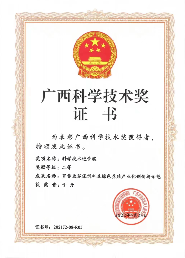 近日,2021年度廣西科學(xué)技術(shù)獎揭曉,百洋股份《羅非魚環(huán)保飼料及綠色養(yǎng)殖產(chǎn)業(yè)化創(chuàng)新與示范》項目榮獲廣西科學(xué)技術(shù)進步二等獎。
